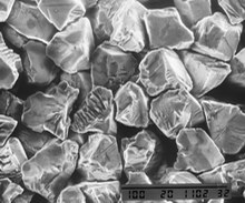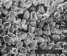 MDR micron powder is a product derived from synthesis of resin bond diamond RBD type, with fractured and slice-like structure. The specific feature of this type is the permanent renewal of cutting edges of crystal thanks to breaking away of small fragments. MDR is more friable and less thermally stable than MDM micron powder.